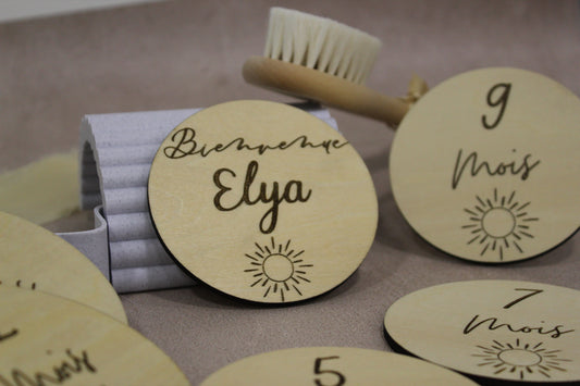 Cartes étapes bébé en bois Ovales, Cadeau de naissance personnalisé pour future maman