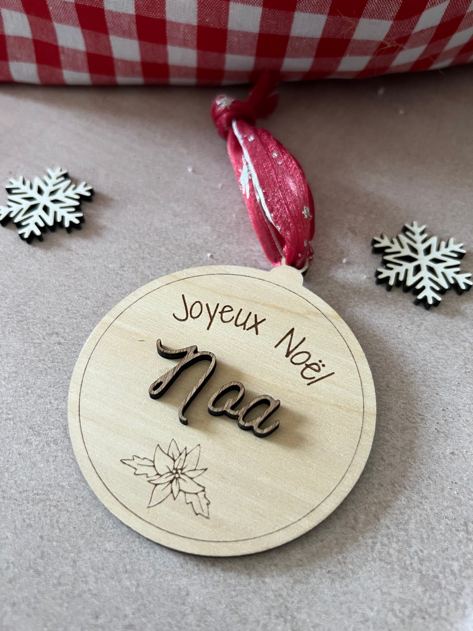Boule de Noël en bois personnalisé - ornement - gravure - Cadeau de noël