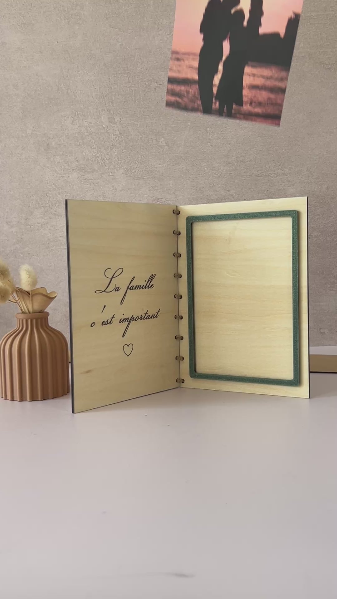 Ce cadre photo en bois personnalisé raconte votre histoire, en toute simplicité.