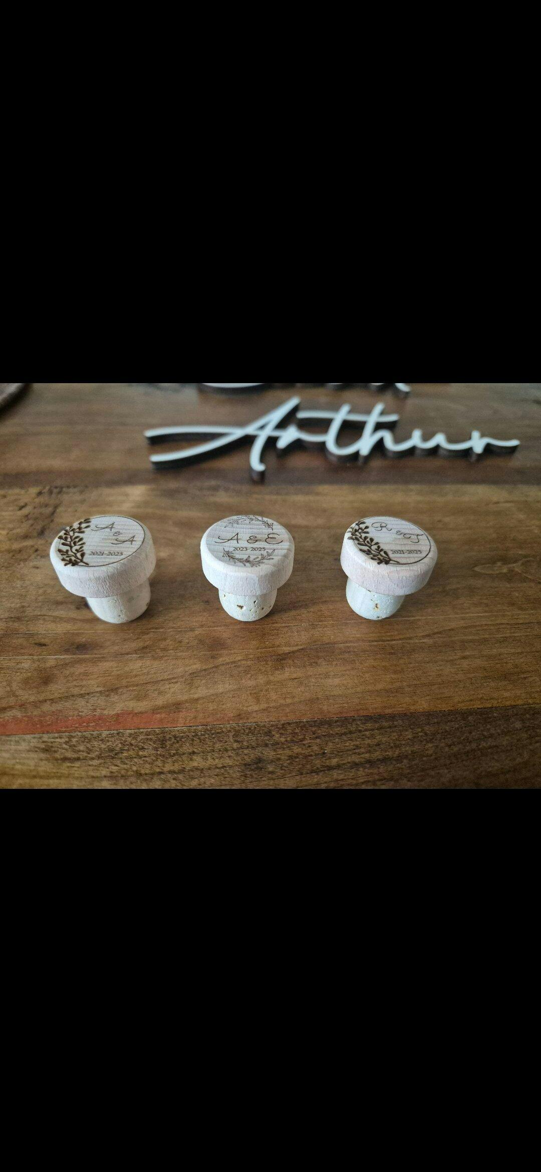 Bouchons de vin en bois et liège, personnalisés cadeau invité de mariage baptême evjf modèle lière