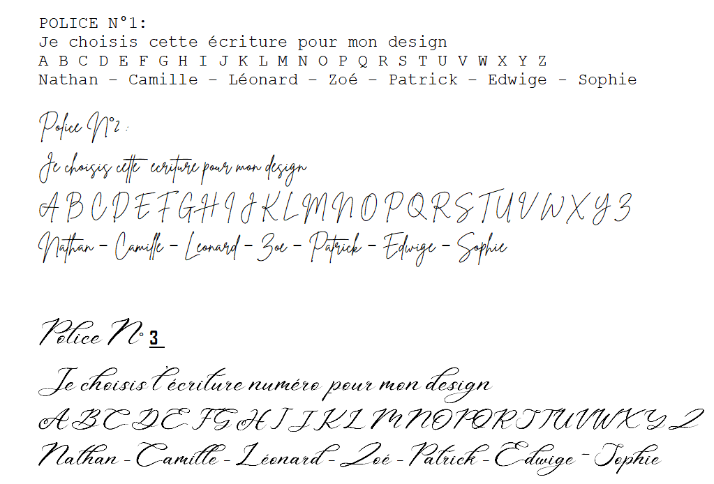-Choisissez la police d'écriture de votre choix, pour le prénom